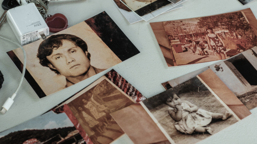 Close-up of vintage Kodak film negatives on a light table, showcasing nostalgic photographic captures.